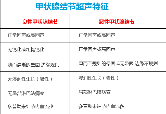 1、超声检查:若发现0.8mm~ 0.8毫米微小结节,且呈不规则或低回声,边缘不整,无包膜,结节内有细小强光点,以及颈淋巴结肿大应高度怀疑为甲状腺恶性腺瘤,如为单纯囊性则恶性可能性很低。